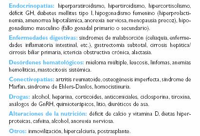 Tabla 2 Causas conocidas de osteoporosis secundarias