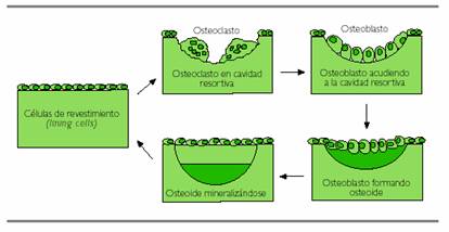 Figura 2. Ciclo de actividad celular y remodelación ósea
