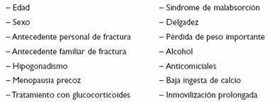 Tabla 4 . Principales factores de riesgo de osteoporosis.