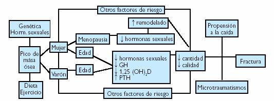 Figura 4. Fisiopatología general de la producción de osteoporosis y fracturas.